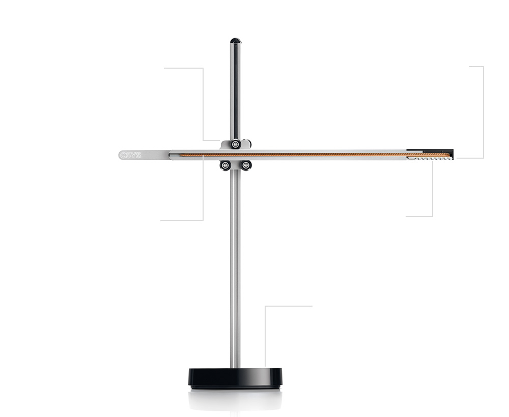 يتم سحب الحرارة من مصابيح LED باستخدام التكنولوجيا المستخدمة عادةً في الأقمار الصناعية. ويتم تشتيتها من خلال مصرف حراري من الألومنيوم، يشكل الذراع الأفقي للمصباح.